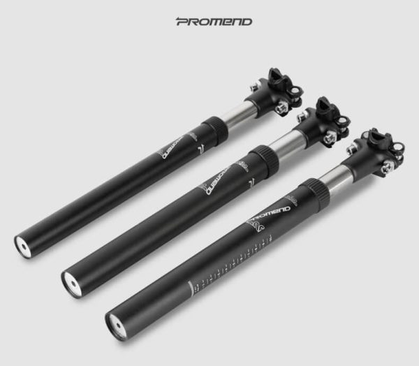 Cọc yên Nhún Promend 27.2 có thể điều chỉnh cao thấp tùy ý. Bộ giảm sóc nhún phía trong rất êm. Chất liệu bên ngoài được làm từ hợp kim nhôm 6000 có độ bền cao,cấu trúc bên trong được nối 1 cách có trật tự và có thể nhìn thấy chất liệu thực.